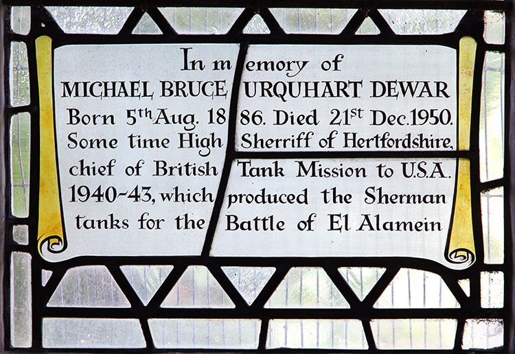 Inscription in memory of Michael Bruce Urquhart Dewar, who died in 1950.
