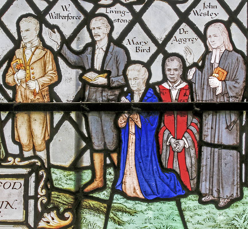 Tier 5 - RH group with William Wilberforce, David Livingstone, Mary Bird, James Aggrey, John Wesley.