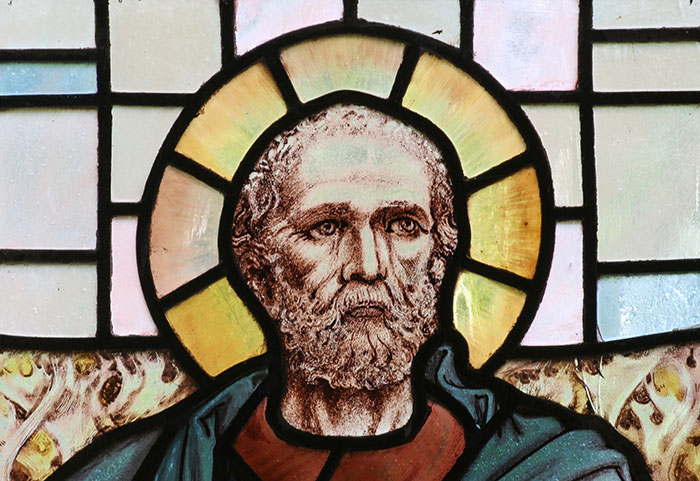LH light: Close up of St Peter's head. He is usually portrayed with white hair and a bushy white beard.