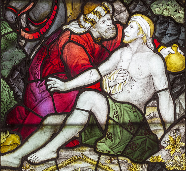 Lower Tier, Centre scene: Closer view of Samaritan and Traveller.