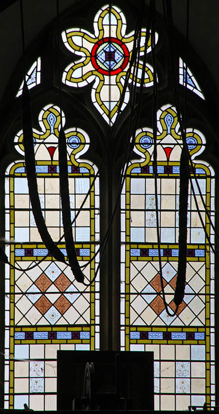 Overall view of glass: Seen through bell ropes