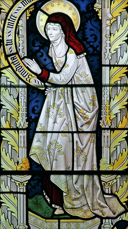 Right Hand Light: Elizabeth with "Benedicta" inscription (Blessed art thou among women)