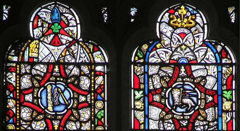 Top of Main Lights: Much of the top of the main lights is composed of fragments of old stained glass, like the Tracery