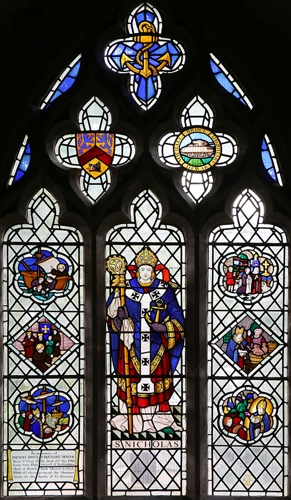 "St Nicholas and six of his legends, Anchor, Sherman Tank"
