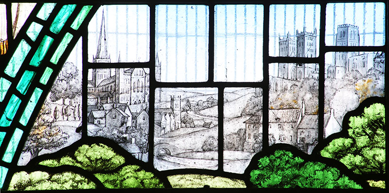 LH light - Middle: In skyline above Male Saints, Salisbury and Durham Cathedrals.