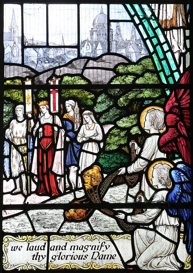 RH light - Middle: Procession of Female Saints, with (from left) Joan of Arc, Margaret, Hilda?, Agnes.