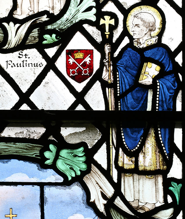 Tier 3 - St Paulinus, who was the first Bishop of York. Beside him are the Arms of the Province of York.