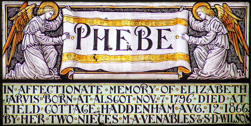 Name of Phebe (an alternative spelling of Phoebe), and inscription to Elizabeth Jarvis, 1796-1866.
