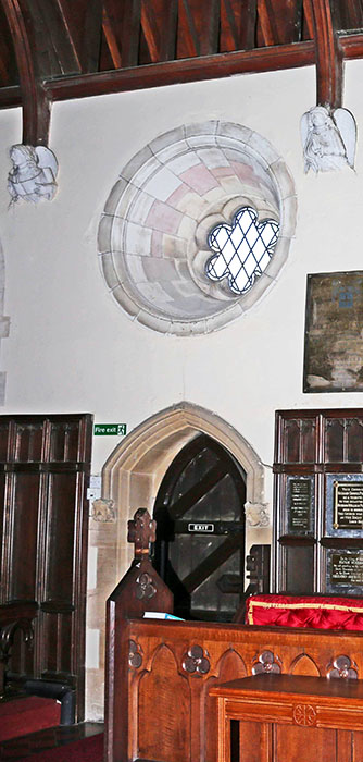 Window 03 above the Priest's door on the South wall of the Chancel.