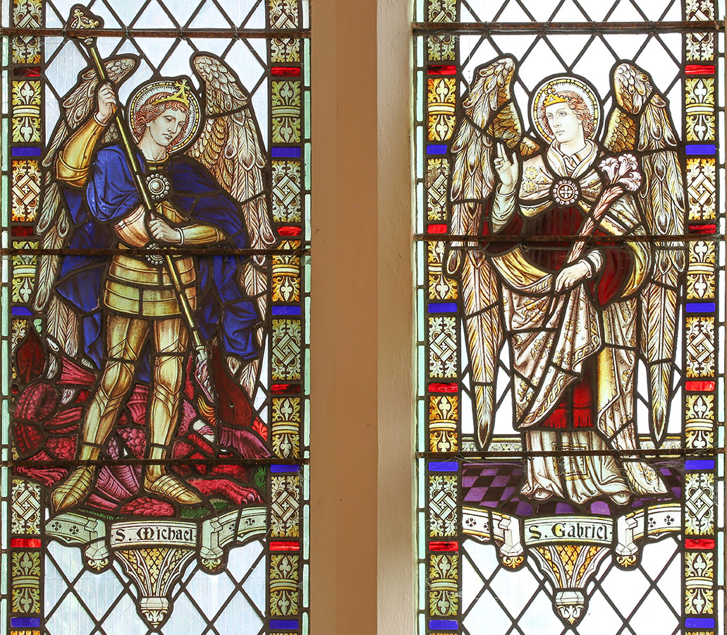 The 2 figures of the window, St Michael and St Gabriel.