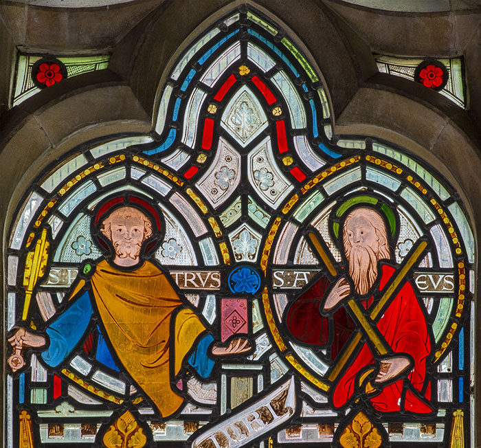 Top of Centre Light: Simon (called Peter) with keys, and Andrew with a transverse cross.