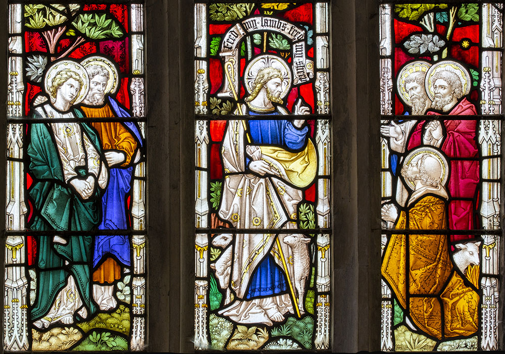 Closer look at main scene where Christ charges Peter with the care of the faithful, symbolised by the sheep.