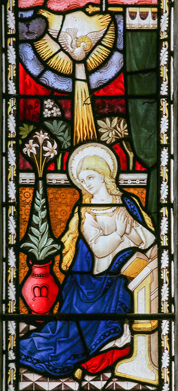 RH light: The Virgin Mary kneels with the Holy Spirit above her.