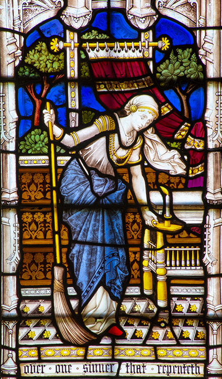 RH light: Parable of The Lost Coin. Text is "over one sinner that repenteth" [Luke 15:10]