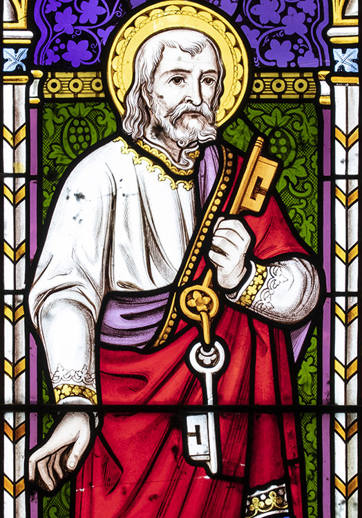LH light: Closer view of St Peter, holding his symbol of two keys.