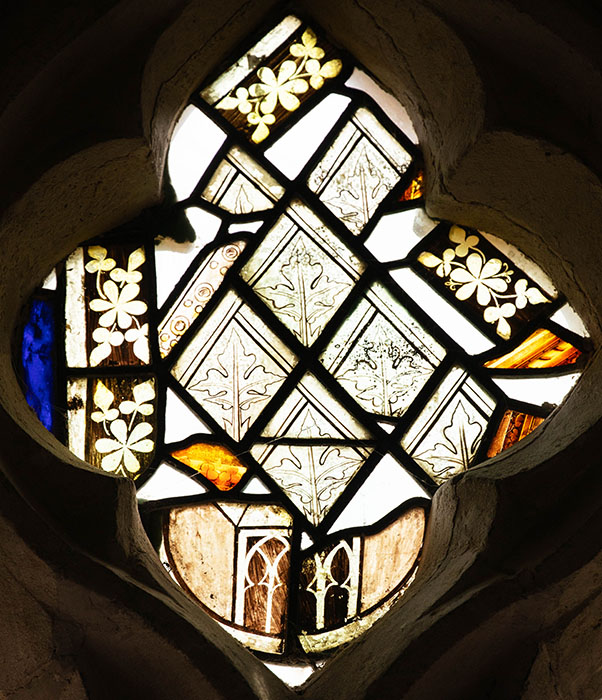 Fragments of Medieval Glass in Tracery.