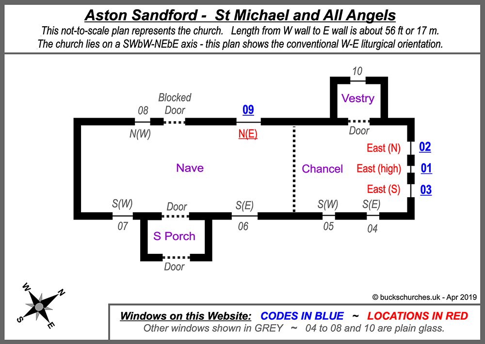 | 02 | East (N) | 1 light | Phebe (sic) | c.1890 | Burlison & Grylls |