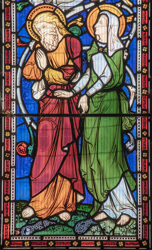 Base of RH light: 2 saints, possibly Peter and Mary Magdalene.