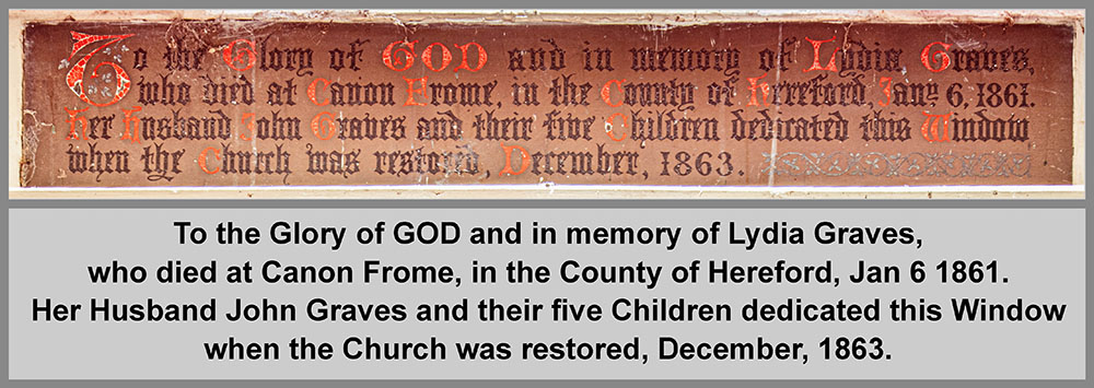 Dedication plaque below window (showing text below).