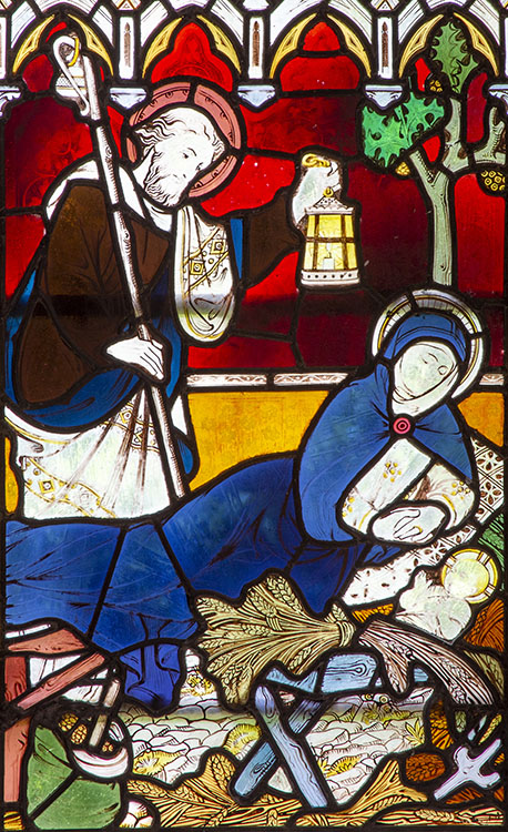 Joseph and the Virgin Mary watch over the infant Jesus.