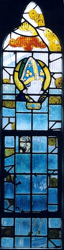 "Old glass fragments & St Nicholas' head"