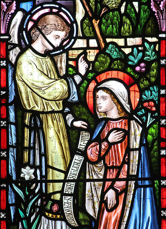 LH light: Close up view of the Annunciation, with the Angel Gabriel and Mary