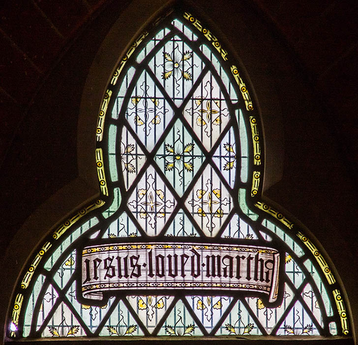 Head of window with text: "Jesus loved Martha"