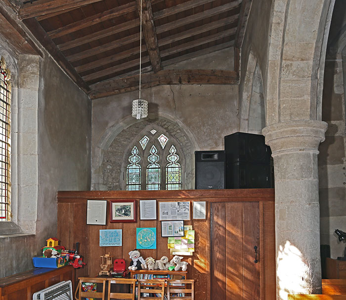 Window in situ (seen over vestry screen)