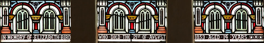 All 3 lights: Base and inscription "In memory of Elizabeth Bird who died the 21st of August 1853 aged 14 years"