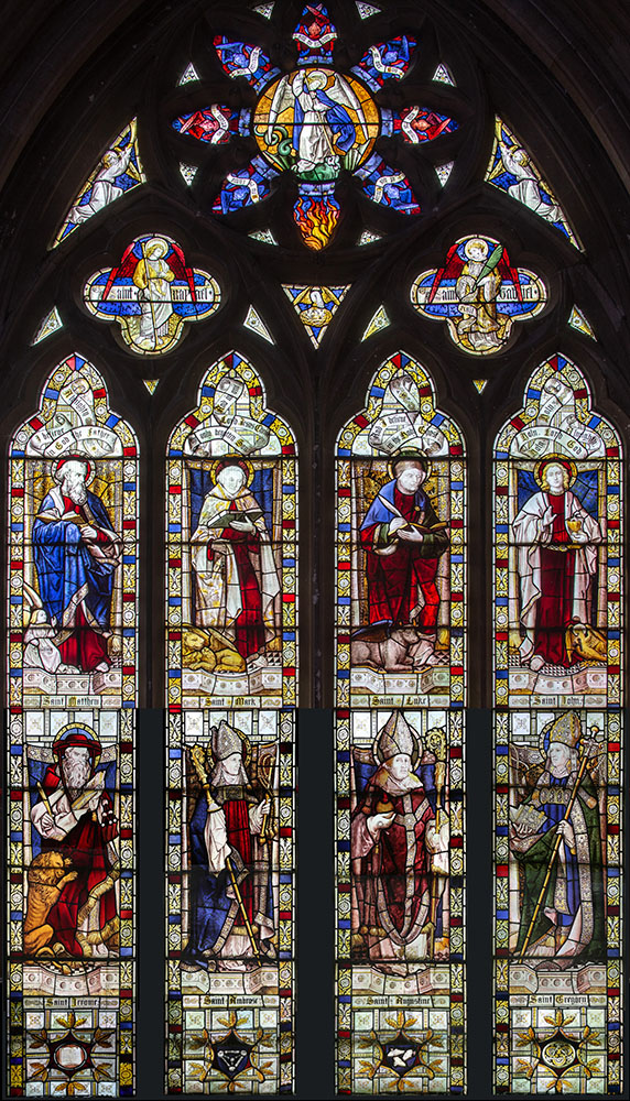 "The 4 evangelists: Matthew, Mark, Luke, John. The 4 Doctors of the Church: Jerome, Ambrose, Augustine of Hippo, Gregory the Great"