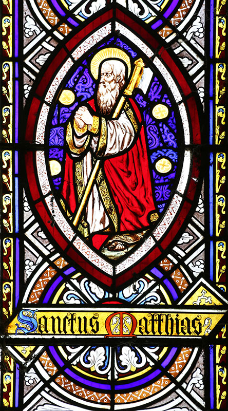 Light 5: St Matthias with his emblem of a halberd, or long axe.