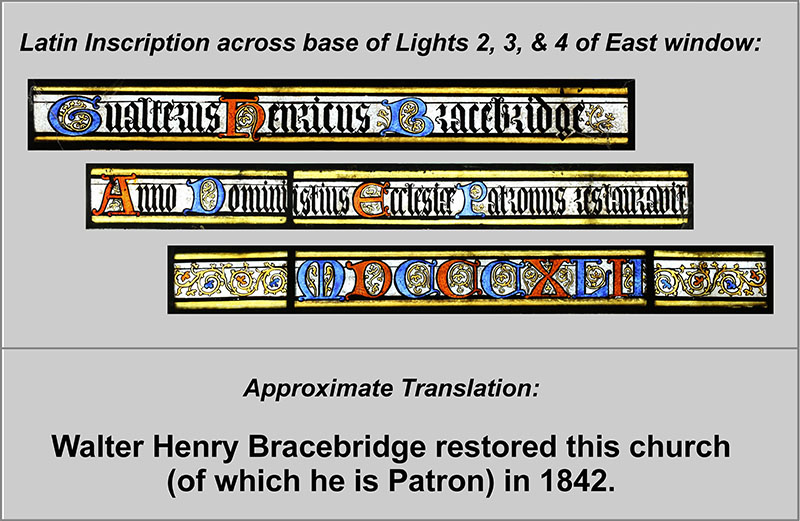 Inscription across base of 3 lights of window.