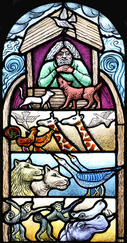 Light 3, top: Noah watches over a multitude of animals and birds on the ark.