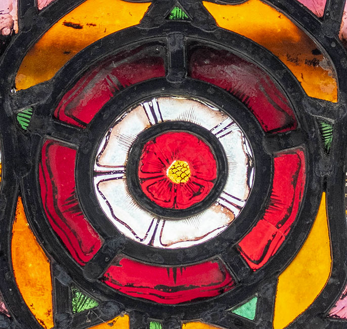 LOWER CENTRE LIGHT, 16C: - Detail of the Tudor Rose.